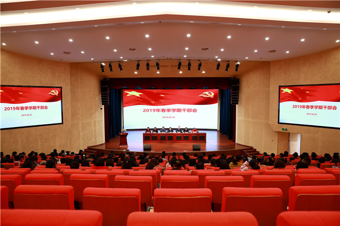 2月25日下午,学校在百会堂召开春季学期干部大会,部署2019年工作,加快推进“双一流”建设工程。全体校领导出席会议,副科级以上干部参加会议,会议由党委书记刘毅主持。
