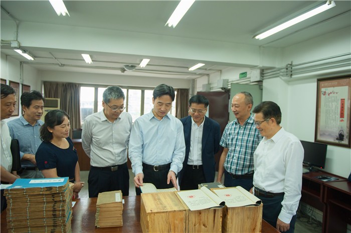 甘霖一行还现场考察了学校图书馆古籍部,深入了解我校古籍保护和研究的基本情况。