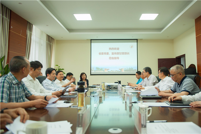 7月11日,省委常委、宣传部部长甘霖一行来到我校十二桥校区,开展中华优秀传统文化传承与发展工作的专题调研。省委宣传部副部长陈华,省教育厅党组书记、厅长朱世宏,省文化厅党组书记、厅长、省文物局局长周思源,省中医药管理局党组书记、局长田兴军,成都市委常委、宣传部部长田蓉,市委宣传部副部长母涛,成都市文广新局党组书记、局长师江,金牛区区委书记金城,成都博物院院长、成都文物考古研究所所长王毅,学校党委书记刘毅、校长余曙光、副校长杨静、梁繁荣教授及相关部门、学院领导出席会议。