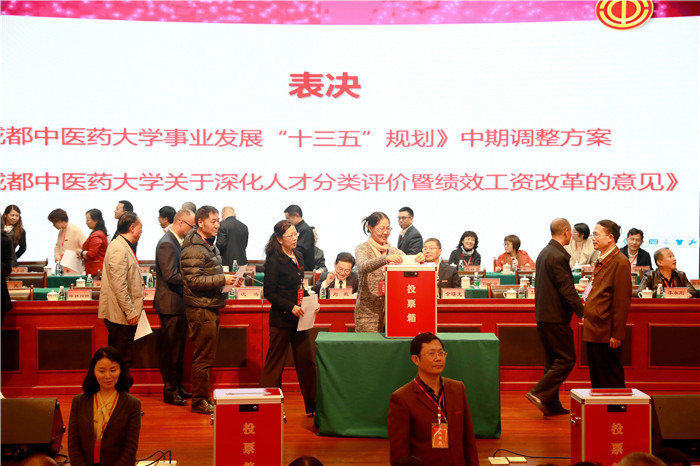 听取报告后,代表们分团对《成都中医药大学事业发展“十三五”规划中期调整方案》《成都中医药大学关于深化人才分类评价暨绩效工资改革的意见》进行了积极讨论、认真审议,并提出了富有建设性的意见和建议。校领导分别深入各代表团听取讨论发言并就大家关心的问题作了回答。