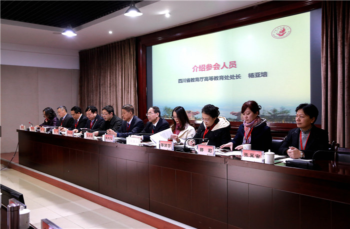 杨亚培介绍评估专家组成员、教育厅参会人员、成都中医药大学参会人员;宋亚兰宣读《四川省教育厅关于开展成都中医药大学本科教学工作审核评估的通知》。
