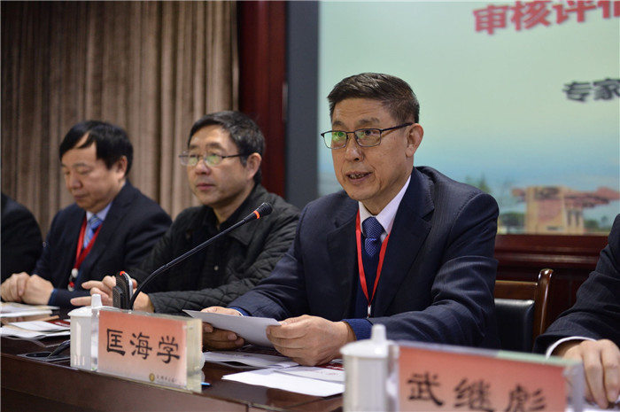 学校校长余曙光就审核评估有关情况作补充说明。他代表学校向各位专家百忙中莅临我校指导本科人才培养工作表示感谢。他指出,教育部审核评估专家组莅临我校指导工作之际,正值我校深入学习宣传贯彻党的十九大精神之时,本次审核评估对于贯彻落实习近平新时代中国特色社会主义思想、推动深化我校中医药教育教学改革,推进学校“双一流”建设,具有十分重要的意义。他从学校的办学历史、学校始终担负着培养高素质中医药人才的使命、始终致力于中医药学术的传承与创新、始终担当彰显中医价值和中医文化的责任、始终崇尚名医名师传承之道、始终不忘初心牢记使命、坚持传承与创新并重将创新创业融入教育教学全过程、我校人才培养质量得到社会的广泛好评和学生的认可等方面作了汇报。他强调,60余年弥足珍贵的办学历史,使我们深刻地感受到:立德树人,培养优秀的高素质中医药人才是学校的根本任务。学校要始终坚持立德树人,坚持中医药特色、发挥中医药优势,坚持“通人文、重经典、高素质、强能力”的培养模式,坚持“院校教育与师承教育相结合”的培养途径,坚持将中医思维养成融入人才培养全过程,坚持以社会需求为导向的创新能力培养。学校将以审核评估为契机,围绕双一流建设目标,推进人才强校、特色发展、质量提升三大战略,实施立德树人专项工程,培养拔尖创新人才等六大工程;推进增强内生活力的教育综合改革等五大改革任务。学校必须坚持中医药特色,发挥中医药优势,遵循中医药人才成长规律,办精办强中医药类专业,带动医药健康相关学科专业的建设与发展,更加主动地推动人才培养体系建设由以治疗疾病为中心向以全面维护健康为中心转变;坚持“仁爱为魂、精诚为本、创新为要、能力为重”的“四为”一流人才培养理念,培养具有对中医药事业有深厚感情,对中医药发展有充分自信,对社会责任有担当精神,对中医药理论有深邃领悟,对中医药实践能力有深入掌握,对中医药文化有深刻认识的“六有”一流中医药人才。为健康中国战略提供“成中医”智慧,为卓越中医药人才培养提供“成中医”方案,为中医药事业全面发展提供“成中医”贡献。