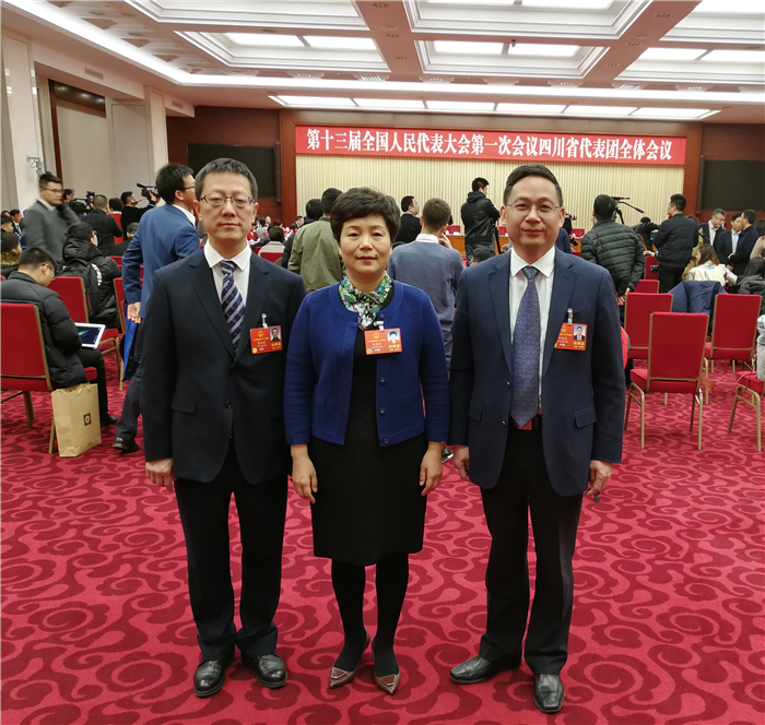 第十三届全国人民代表大会正在北京召开,人大代表们都在认真而忙碌地工作着,听取政府工作报告,审议宪法修正案(草案),为国为民建言献策。在他们当中,有三个不同而又相同的身影:他们的职业不同,有高校教师,有政府公务员,有医生;他们的党派不同,有中共党员,有民盟盟员,有农工党员;他们的地域不同,有的来自成都,有的来自广元。但他们都是四川团的全国人大代表,他们都是成都中医药大学的校友,更令人惊奇的是他们是同门同学。30年前,他们负笈求学,成为成都中医药大学医学系中医学专业81级同学;他们在同门学习毕业30年后,相聚北京,作为人大代表,共同履行神圣使命。