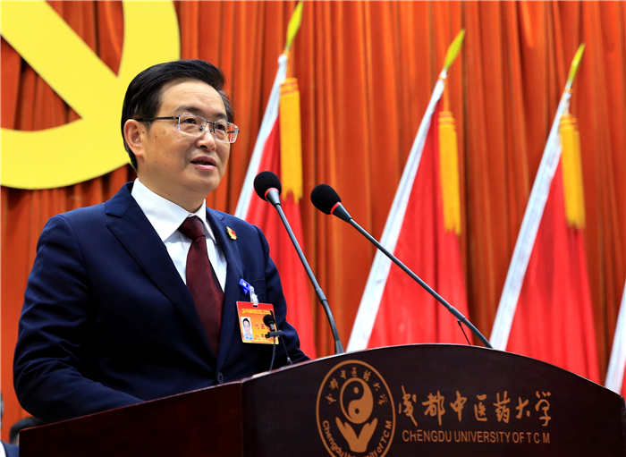 刘毅分析了学校面临的困难与挑战。他指出,回顾学校60年的发展历史,总结学校7年以来的工作经验,在“双一流”建设的新征程中,我们要坚定地以习近平新时代中国特色社会主义思想统揽学校工作,进一步认清中国特色社会主义新时代对高等教育发展的新要求,进一步把握全面小康、健康中国对中医药高等教育改革与发展的新机遇,进一步明确四川省中医药强省建设战略目标对学校工作提出的新任务。