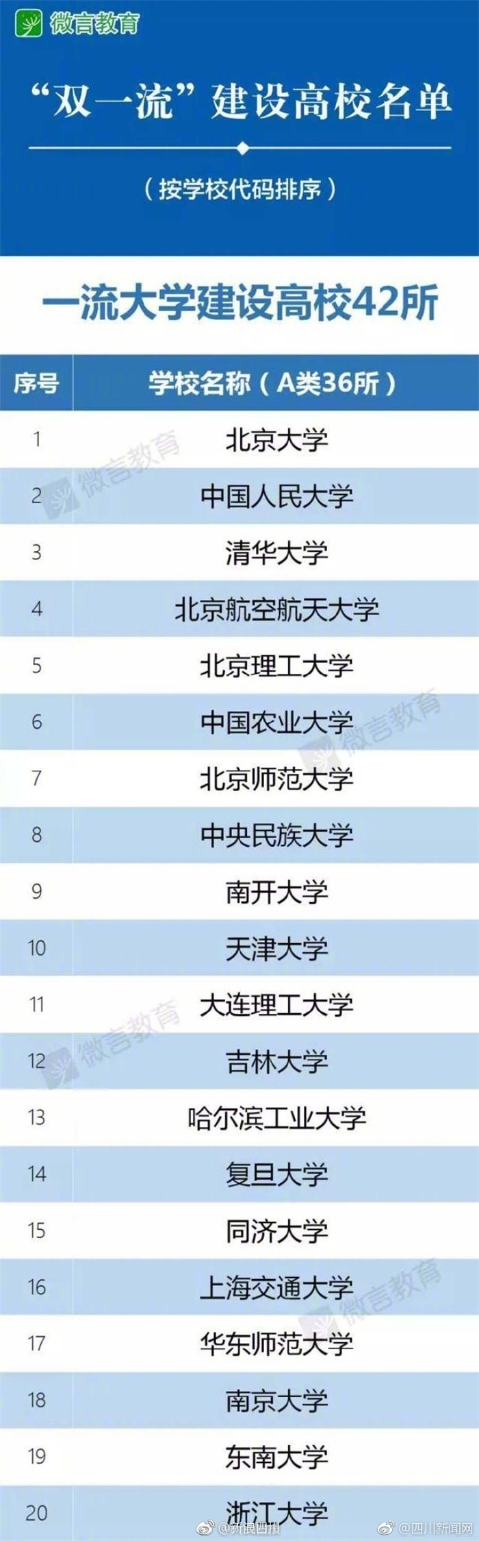 重磅!我校入选“双一流”建设高校名单 发布时间:2017-09-21 15:01:00 浏览次数: 次 【字体:小 大】 日前,教育部、财政部、国家发展改革委印发《关于公布世界一流大学和一流学科建设高校及建设学科名单的通知》,公布世界一流大学和一流学科(简称“双一流”)建设高校及建设学科名单。我校入选“一流学科建设高校”名单,我校“中药学”入选“双一流”学科建设名单。 (编辑/任翔) 【打印正文】 上一条:我校与广安市拉开深度合作序幕 下一条:2017级新生开学典礼举行 校长余曙光为成中医新人上第一堂课