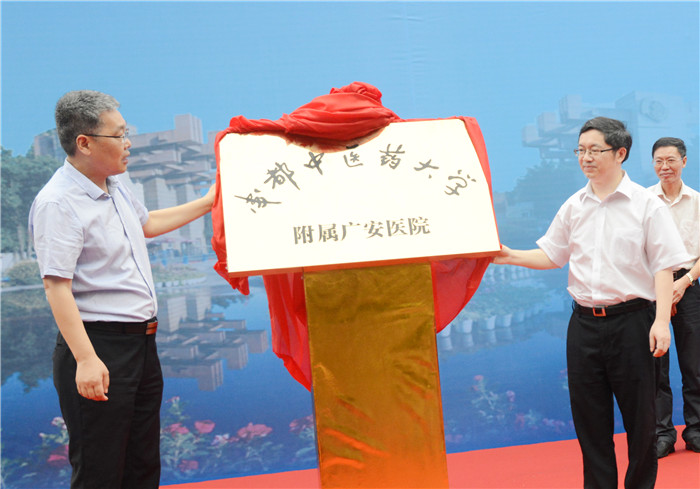 余曙光和曾卿共同为成都中医药大学附属广安医院揭牌。