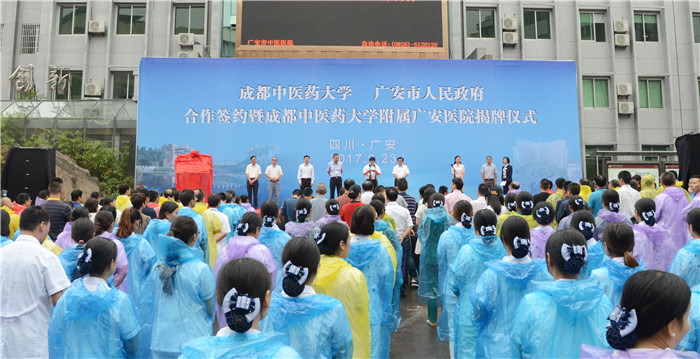 经过半年多时间的交流和酝酿,我校与广安市人民政府正式牵手深度合作。9月23日,双方在广安市中医医院举行了校地合作签约仪式暨“成都中医药大学附属广安医院”揭牌和义诊活动。