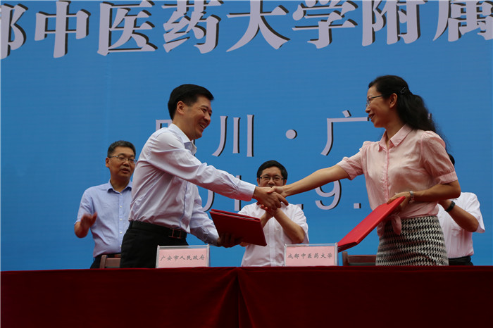 学校与广安的合作从共建医院入手,学校派驻院长和管理(技术)团队对广安市中医医院进行院科两级管理,借助广安市人民政府的特殊政策扶持和学校及附属医院的资源整合,通过5至10年的时间,将广安市中医医院打造为名副其实的成都中医药大学附属医院以及三级甲等中医院,整体提升伟人故里的中医医疗服务水平。