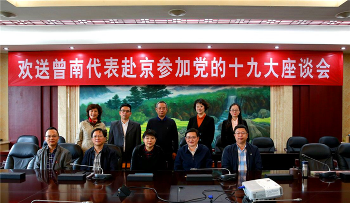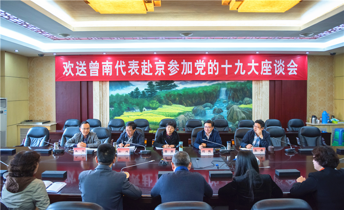 中国共产党第十九次代表大会即将于10月18日在北京隆重召开,我校药学院中药药理系主任曾南教授当选为十九大代表将参加盛会。10月13日下午,学校举行座谈会,热烈欢送曾南代表赴京参会。学校党委书记刘毅,副校长彭成,校党政办公室、党委组织部、党委宣传部、人事处、药学院负责人以及曾南教授所在党支部书记参加会议。