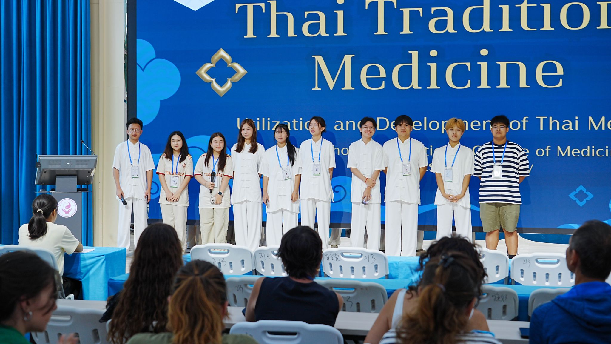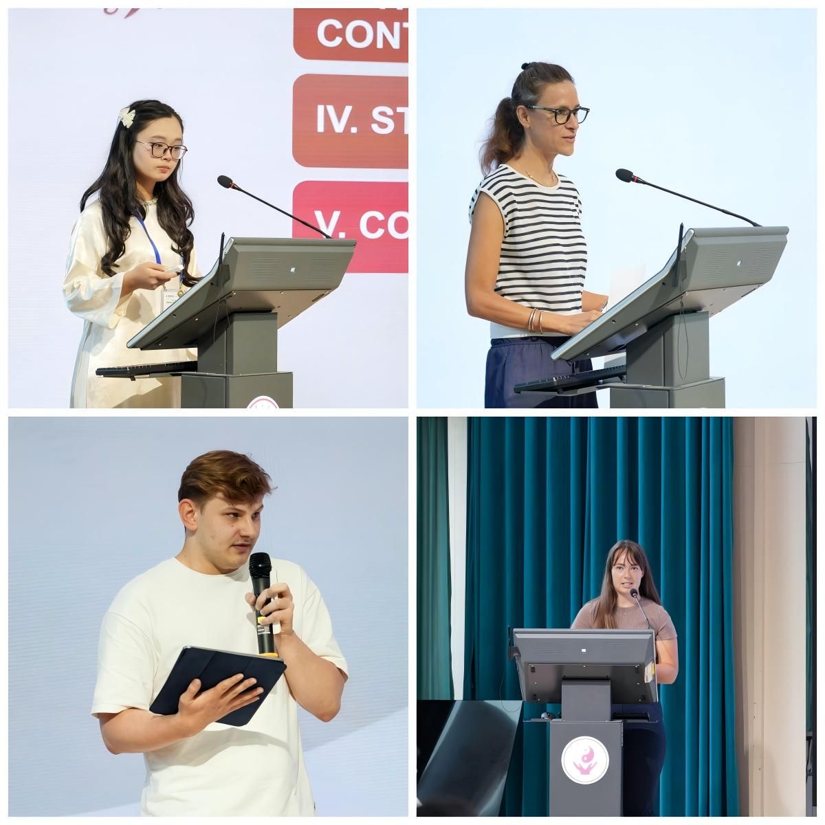来自俄罗斯谢东诺夫大学的Roman同学、加拿大中医科学院的PREFONTAINE JULIENNE MARIE同学、瑞士两神中医药学院的Valerie Otero同学、新加坡南洋理工大学的Koh Jia Min同学分别分享了中医药在本国的传播脉络、应用现状和发展前景,为传统医药的国际传播提供了新的视角。来自泰国法政大学的Kritsanaphum Lemsa等同学介绍了泰草药制品、泰式按摩、泰式养生食物和本国推广泰医药的实践路径;来自越南传统医药大学NGUYEN THI THUONG HUYEN以全球化视角解析越南传统医药的传承路径和革新实践,让参会者充分领略了异国医药文化的独特魅力。